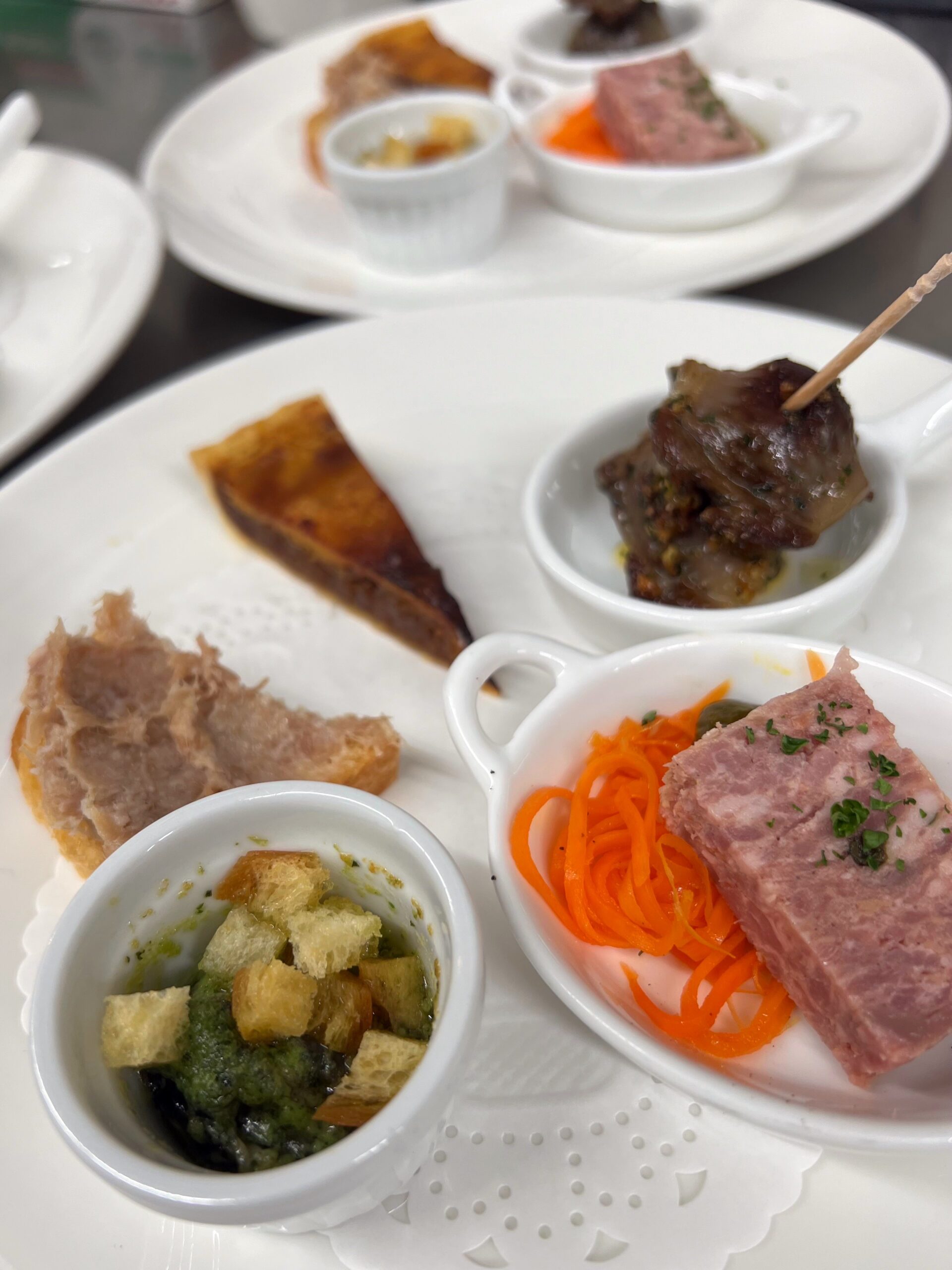 「ムニュ・フルヴィエール」と「ムニュ・テットドール」はオードヴル2皿、「ムニュ・ベルクール」はオードヴル1皿です。